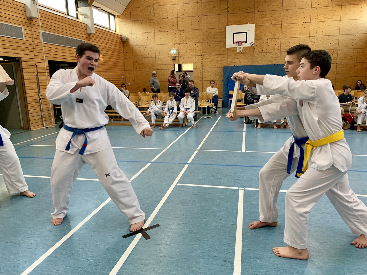 Insgesamt vier Sportler vom TV-Diedenbergen stellten sich den Disziplinen Poomsae (Formen), Freikampf, Selbstverteidigung, Ein-Schritt-Kampf sowie Bruchtest.