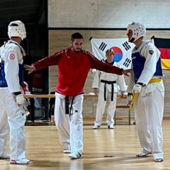 Patrick Meik vom TV-Diedenbergen stellte den Disziplinen Poomsae (Formen), Freikampf, Selbstverteidigung, Ein-Schritt-Kampf sowie Bruchtest souverän und bestand die Prüfung zum 2. Dan!