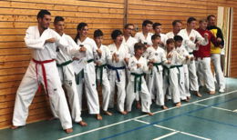 Mit der Unterstützung von den Trainern Ramon Benmesbah (1. Dan) und Philip Viertel (1. Dan) stellen sich am Freitagabend 15 Prüflinge im Alter von 8 bis 55 Jahren den unterschiedlichsten Prüfungsdisziplinen unterteilt in Grundschule, Formen, Freikampf, Selbstverteidigung, Bruchtest und Theorie.