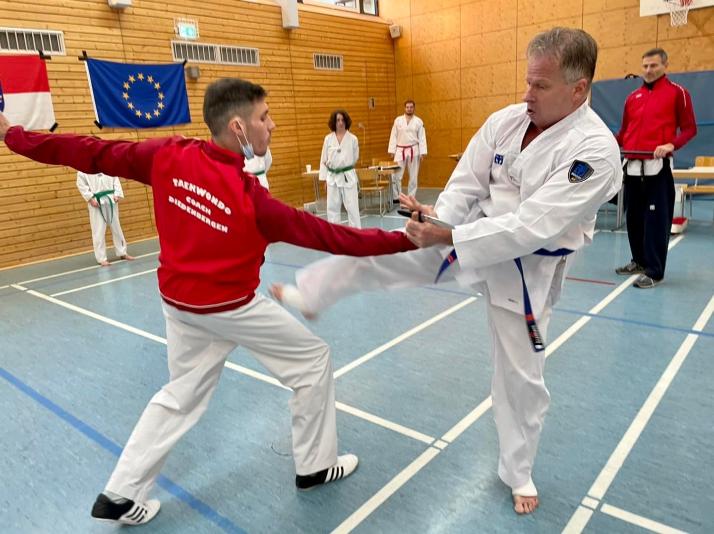 Am Samstag, den 27. November 2021, stellten sich 43 Prüflinge im Alter zwischen fünf und 57 Jahren der Prüfung - unterteilt in Grundschule, Formen, Freikampf, Selbstverteidigung, Bruchtest und Theorie, um den nächsten Taekwondo-Gurtgrad zu erreichen.