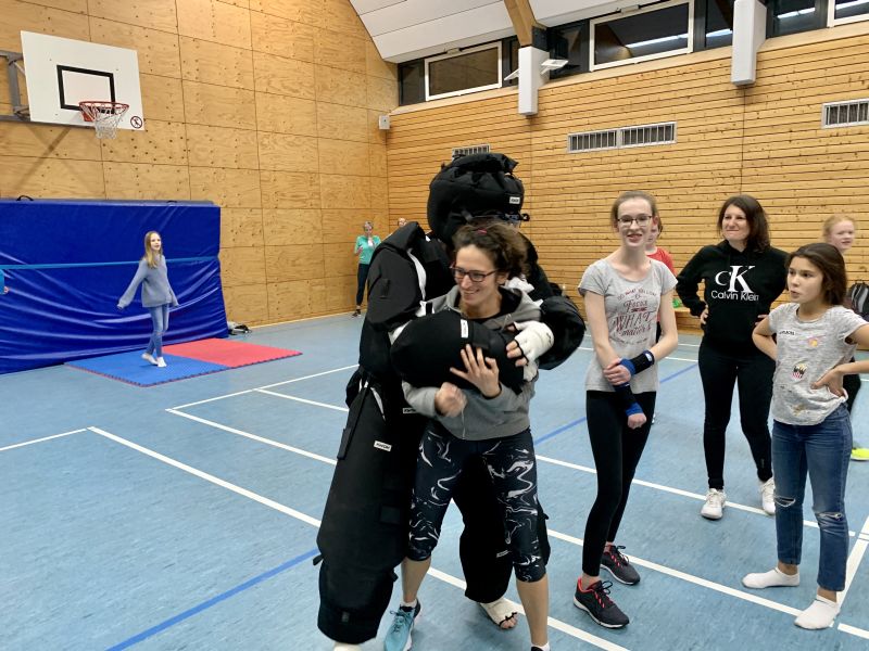 Weitere Verteidigungen gegen Angriffe wie Würgen, Umklammern von vorne und hinten, dem Packen an den Handgelenken, die Verteidigung am Boden und dem richtigen Platzieren von Schlägen wie z.B. einer Ohrfeige wurde mit verschieden abwechselnden Trainingspartnern, Dummys oder einem Trainer in einem Vollschutzanzug geübt. Zusätzlich erlebten die Teilnehmerinnen unerwartete Angriffe durch das Trainerteam, um das Erlernte unter Stress direkt anzuwenden.