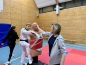 Weitere Verteidigungen gegen Angriffe wie Würgen, Umklammern von vorne und hinten, dem Packen an den Handgelenken, die Verteidigung am Boden und dem richtigen Platzieren von Schlägen wie z.B. einer Ohrfeige wurde mit verschieden abwechselnden Trainingspartnern, Dummys oder einem Trainer in einem Vollschutzanzug geübt. Zusätzlich erlebten die Teilnehmerinnen unerwartete Angriffe durch das Trainerteam, um das Erlernte unter Stress direkt anzuwenden.