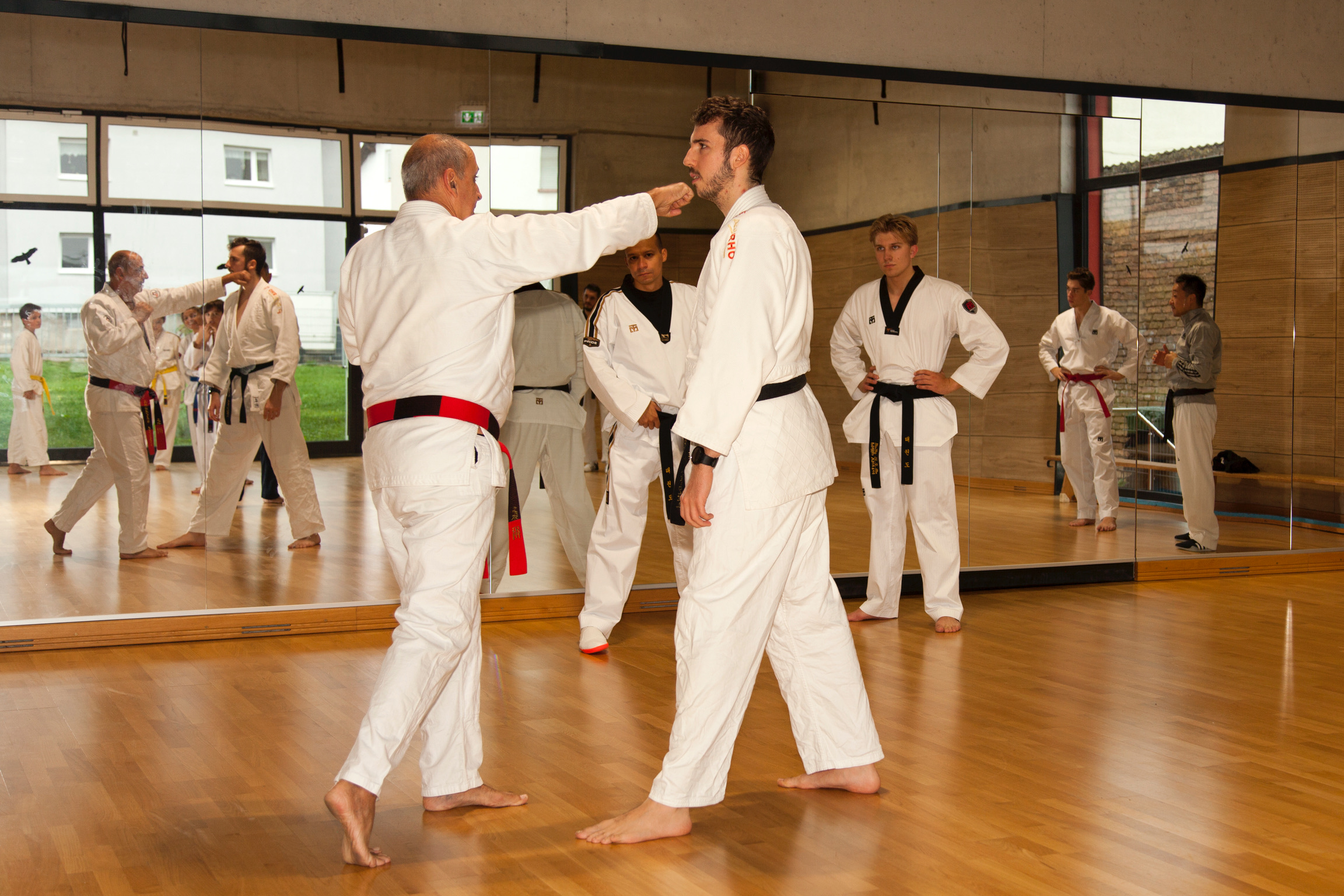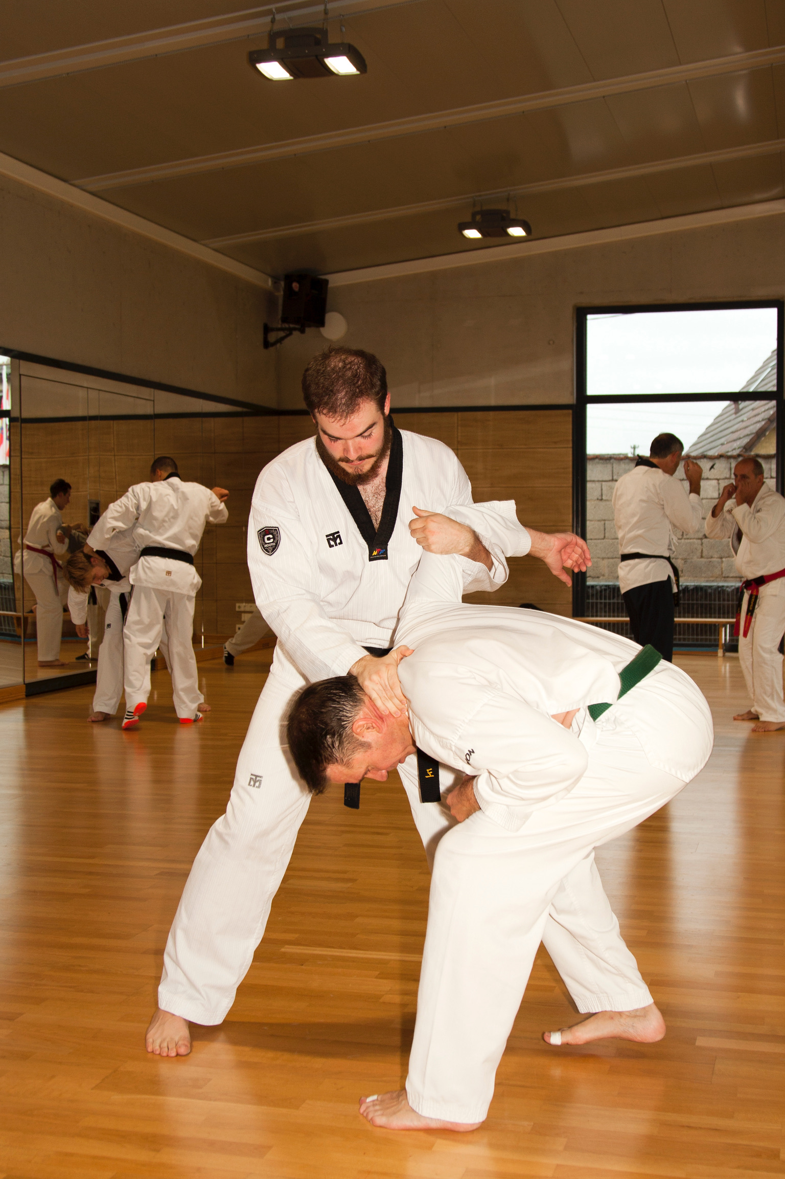 ... und warum sollte man das trainieren? Stellt euch vor, Du kommst in eine Situation, in der ein Streit eskaliert und Du, obwohl Du selbst nie aktiv Gewalt anwendest, nun tatsächlich selbst körperlich angegriffen wirst. Dein aggressives Gegenüber merkt, dass Du es nicht gewohnt bist, körperlich Gewalt auszuüben und sieht Dich als unterlegen an. Wäre es in so einer unfreiwilligen Situation nicht nützlich, sich gewappnet zu fühlen?
