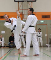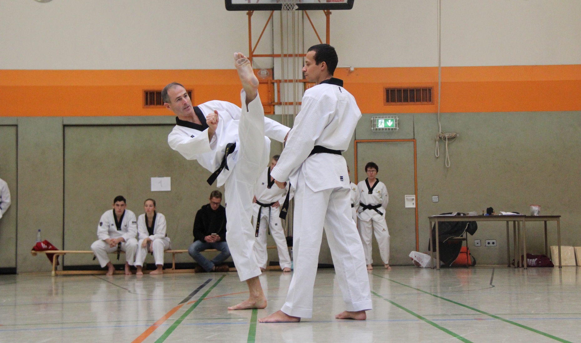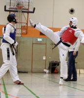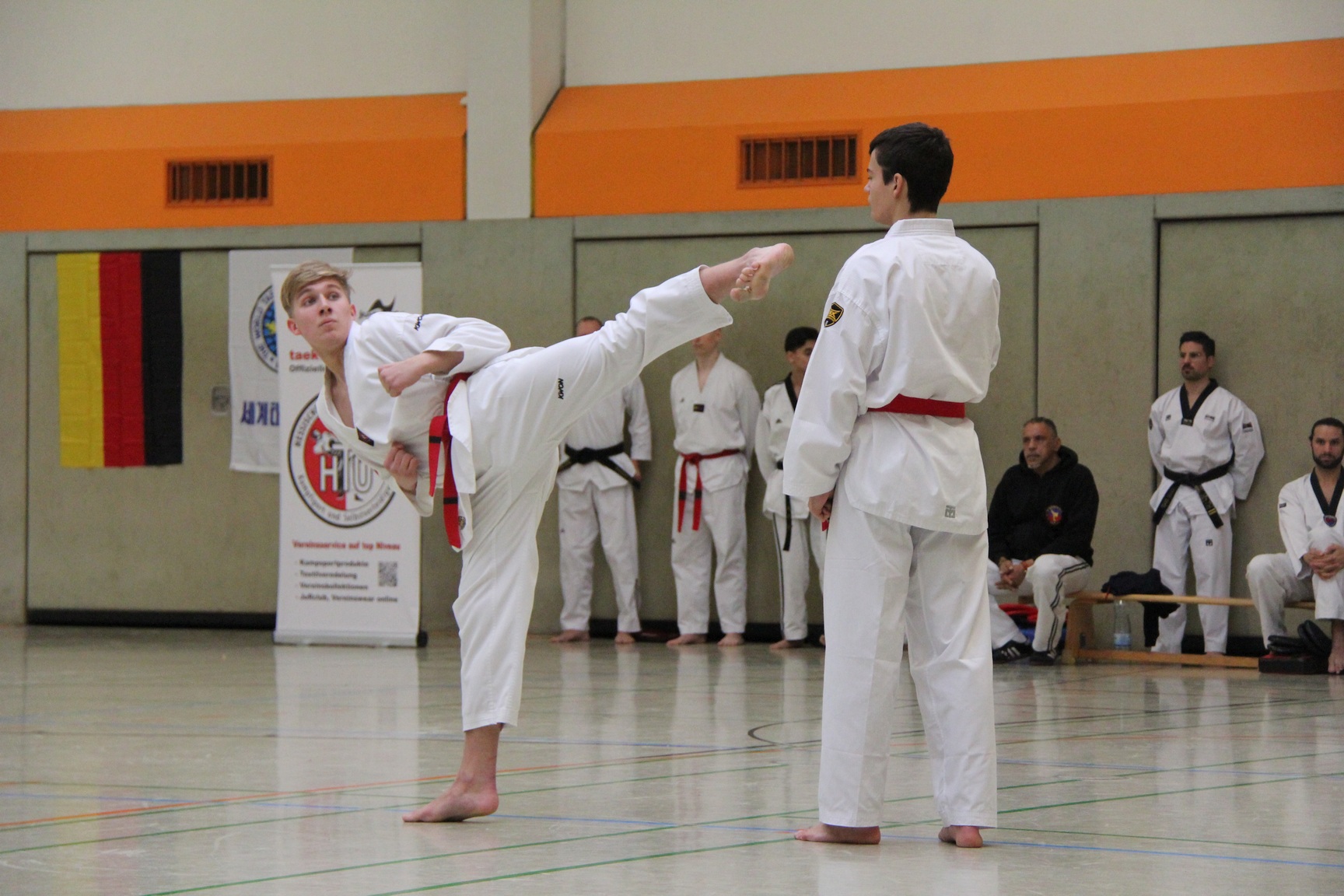 Insgesamt vier Sportler vom TV-Diedenbergen stellten sich den Disziplinen Poomsae (Formen), Freikampf, Selbstverteidigung, Ein-Schritt-Kampf sowie Bruchtest.